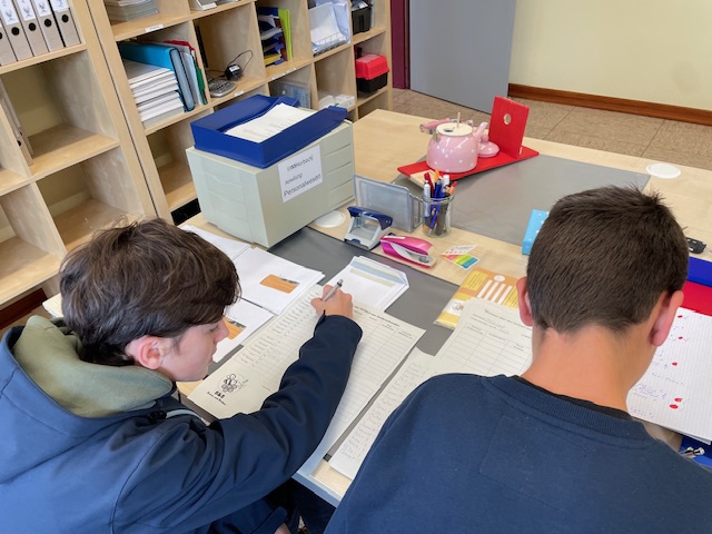 Gemeinsam bereiten wir uns auf den Verkaufsstand bei der REWE Filiale in Morbach für den 10.03.2026 vor. Momentan ist es im Büro recht still und es herrscht eine angenehme Arbeitsathmosphäre, während in der Werkstatt, durch die Musik motiviert, weiter gearbeitet wird. Unsere höchste Priorität heute, ist es die Samenbombengläser zu beplotten. Wir sind also stets bemüht, unsere Aufgaben, auch in anderen Abteilungen, gewissenhaft zu erledigen.