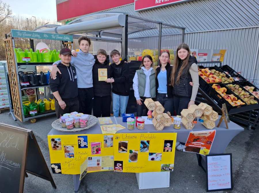 Auch heute begannen wir wieder zuversichtlich den Tag, denn uns kam die Möglichkeit zuteil, eine Marktanalyse beim REWE durchzuführen.Währenddessen waren natürlich auch unsere Abteilungen nicht untätig, denn unser Marketingteam sowie unser Finanzteam haben mal wieder alles bei der Gestaltung und Organisation der Firma gegeben.Natürlich war auch unser Manufaktur/Social-Media-Team fleißig und hat sich mit viel Eifer der Produktion von weiteren Werbevideos sowie von den Samenbomben gekümmert.Desgleichen war auch unsere Werkstatt sehr produktiv, denn diese hat effizient weitere Bambusröhrchen für die Bienenhotels produziert.Es geht also gut voran und wir schauen positiv in die Zukunft.